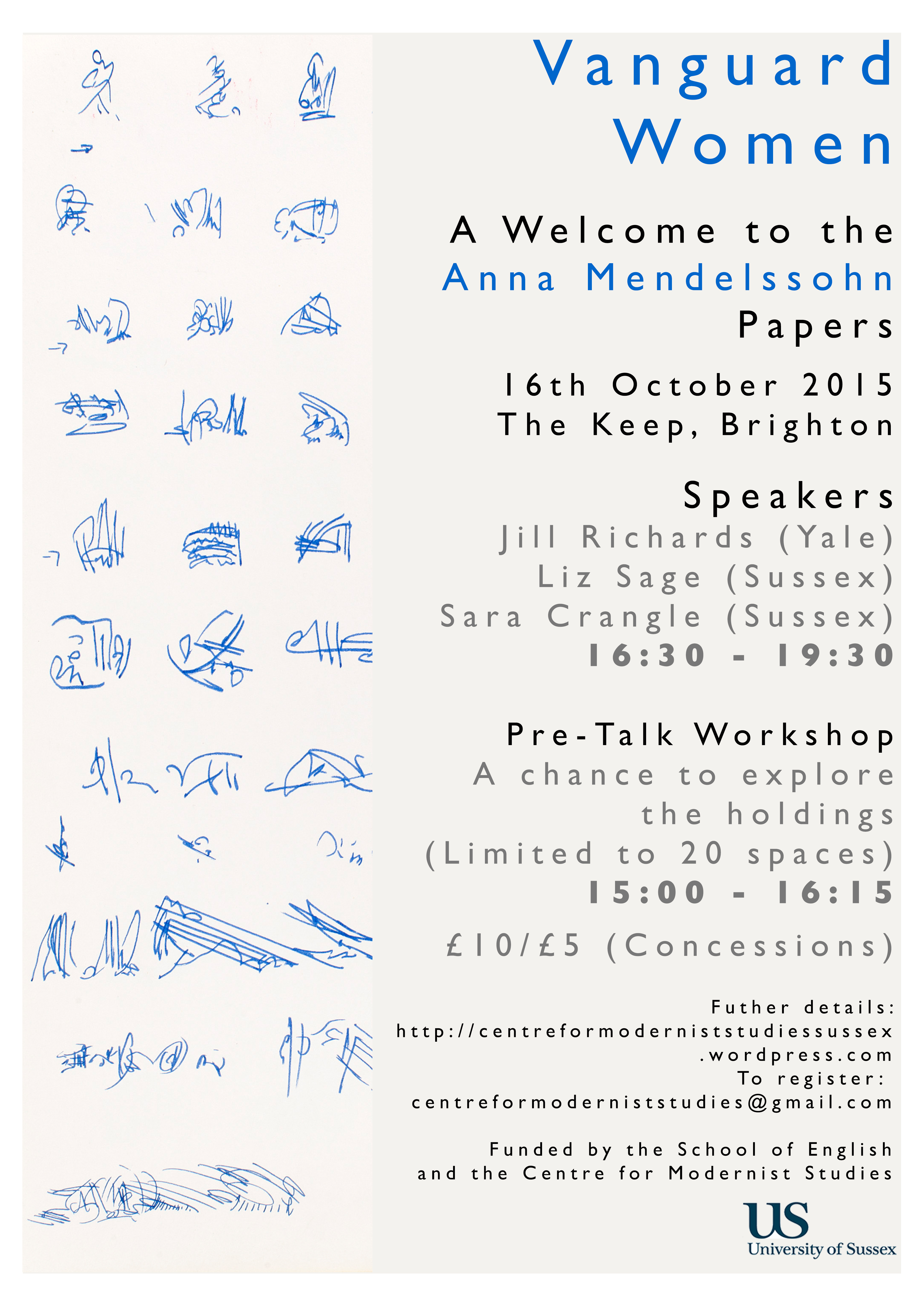Please see below for the poster for the event “Vanguard Women – A Welcome to the Anna Mendelssohn Papers” which will be held at The Keep, Brighton on Friday 16th October 2015.